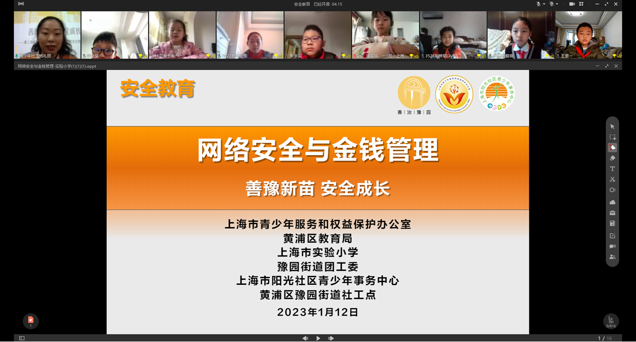 学校依托社区资源,邀请来自上海市阳光社区青少年事务中心的杨礼丽老师,为同学们开设了主题为“网络安全与金钱管理”的安全教育讲座。杨老师通过有趣的故事,教导同学们合理使用压岁钱,养好自己的“小金鹅”;通过直观的视频,引导同学们知晓预防诈骗的“三不一多”原则,牢固树立网络安全观。
